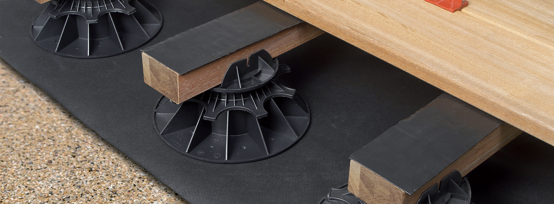 De punctuele en verdeelde belastingen van het terras, opgenomen op de verstelbare sokkels, worden dankzij het geotextielvilt het best over de grond verdeeld. Geodeck®-vilt verbetert daarom de algehele stabiliteit van de constructie.